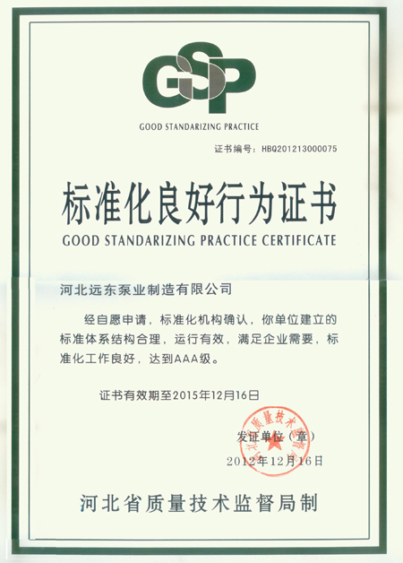 河北(běi)省質量技術(shu)監督局頒發(fā)-标準化練好(hǎo)行為證書