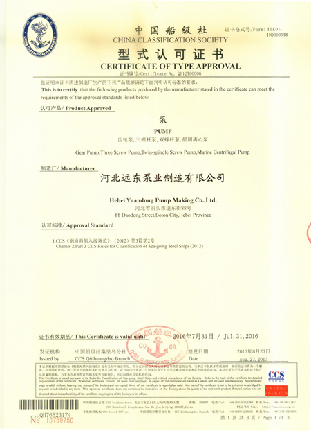 中(zhong)國船級社頒(ban)發-型式認可(ke)證書