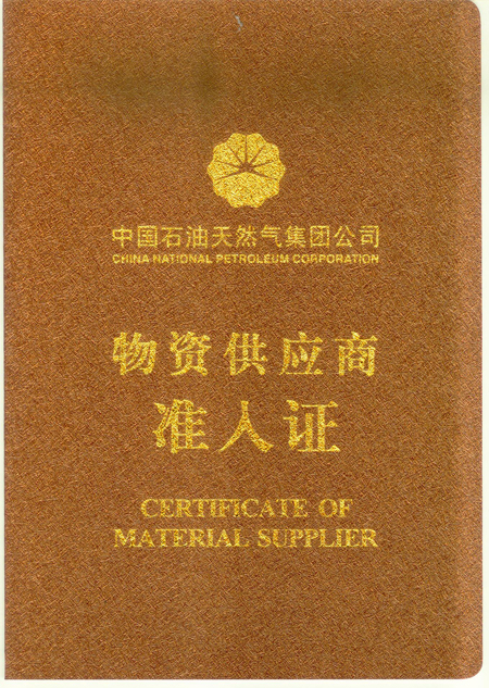 中(zhong)國石油天然(ran)氣集團公司(si)頒發-物資供(gòng)應商準入證(zhèng)