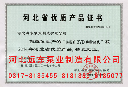 河北(bei)省質量技術(shu)監督局頒發(fa)河北省優質(zhi)産品證書