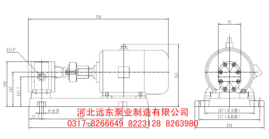 2CY1.08齒輪泵(bèng)流量1.08m3/h,配用電機(ji)1.5KW-4,可排出壓力0.6Mpa或(huò)者2.5Mpa,吸入真空高(gāo)度3米,口徑G3/4",效🔅率(lü)58%. 該泵安裝尺寸(cun)圖: